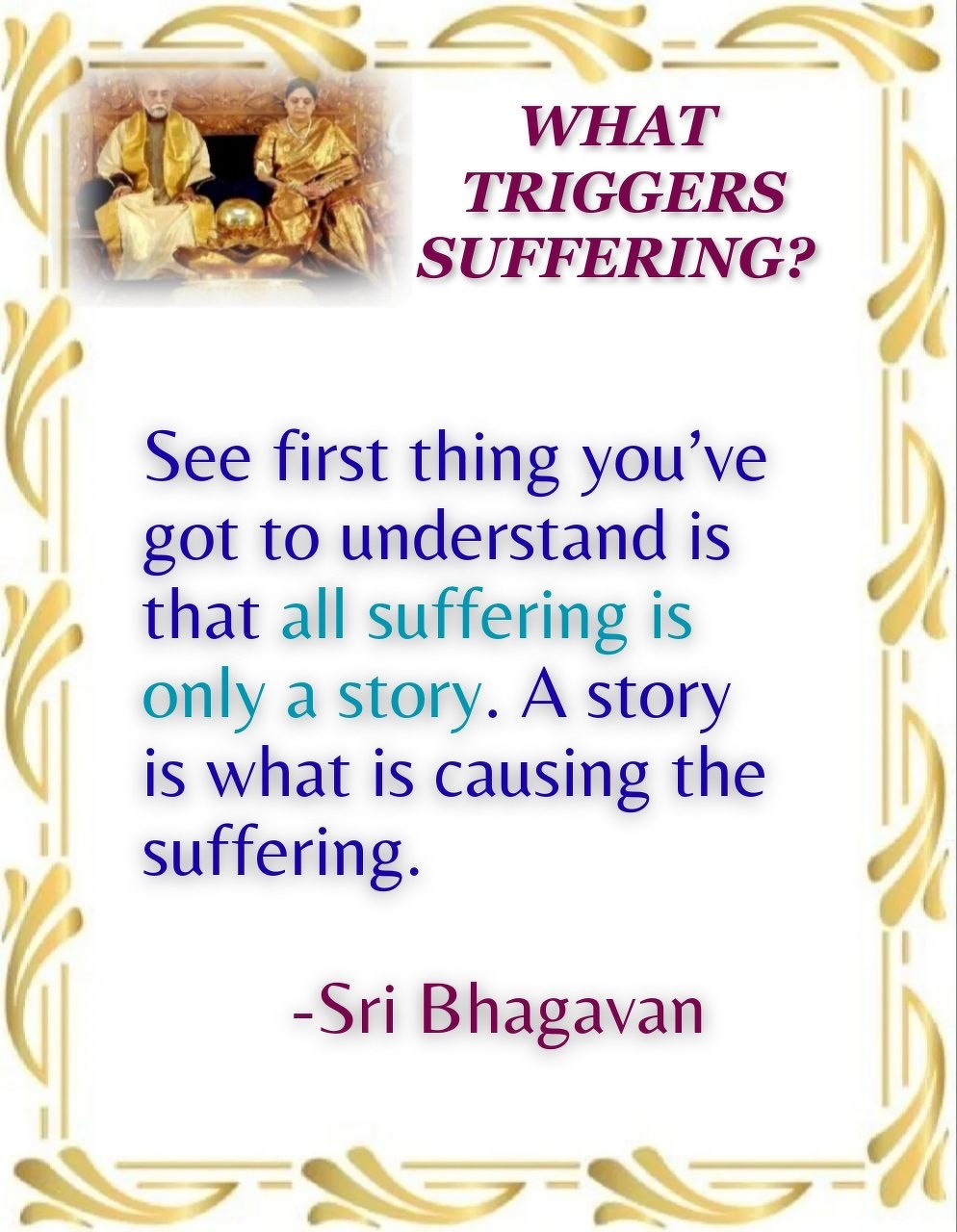 See first thing you’ve got to understand is that all suffering is only a story. A story is what is causing the suffering.