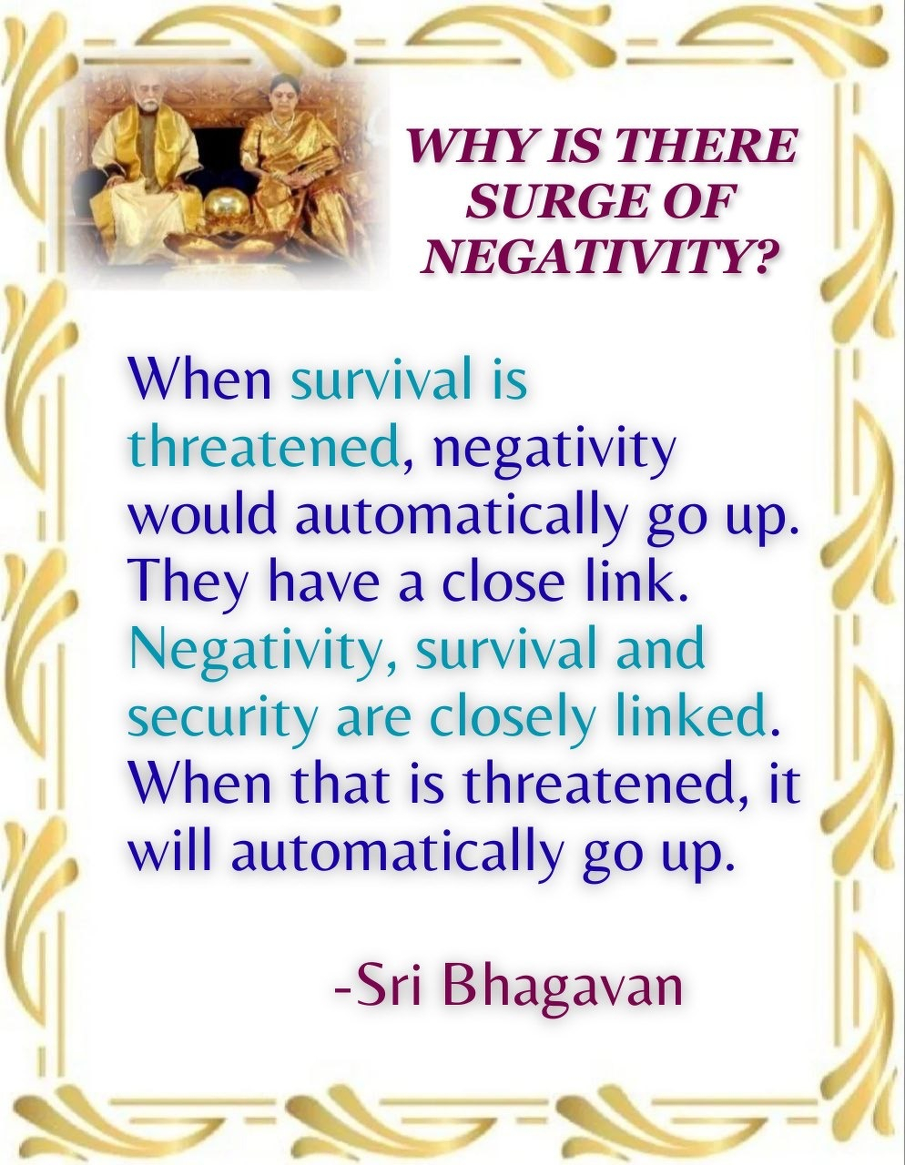 When survival is threatened, negativity would automatically go up. They have a close link. Negativity, survival and security are closely linked. When that is threatened, it will automatically go up.